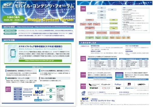 - 任意団体の解散と一般社団法人の設立により一般社団法人モバイル・コンテンツ・フォーラムとして活動を開始。