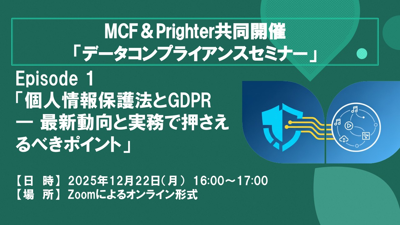12/22【MCF&Prighter共催】「個人情報保護法とGDPR ~ 最新動向と実務で押さえるべきポイント」:データコンプライアンスセミナー(全4回)
