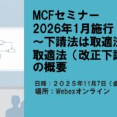 11/7 MCFセミナー「2026年1月施行!~下請法は取適法へ~ 取適法(改正下請法)の概要」 -